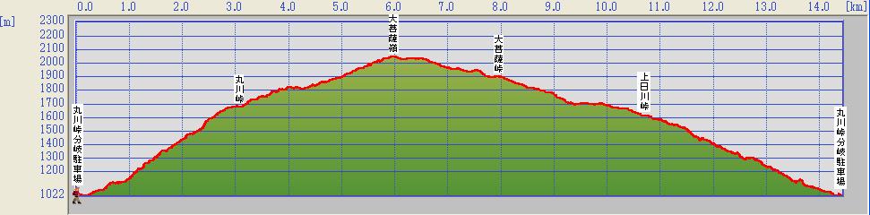 写真がピンボケで見ずらいのですが駐車場から丸川峠までが2時間20分、丸川峠からだ御菩薩嶺までが1時間20分となっています。