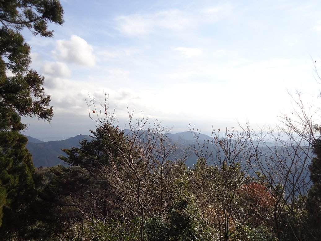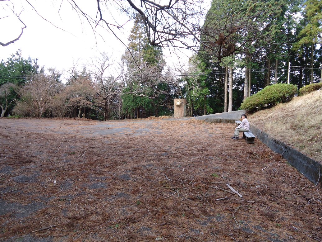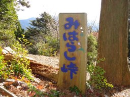 山頂に向ってちょっと進むと、みはらし峠と書かれた看板があります。今回の山登りで唯一景色が見える場所でした。ちょっとした休憩広場になっています。 |