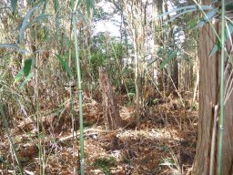登山道に入るとすぐにこのような植林された杉林の中を通ります。 |