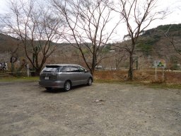 ならここの湯を通り過ぎ、すこし先に行くと右側に駐車場があるのでここに車を停めます。 |