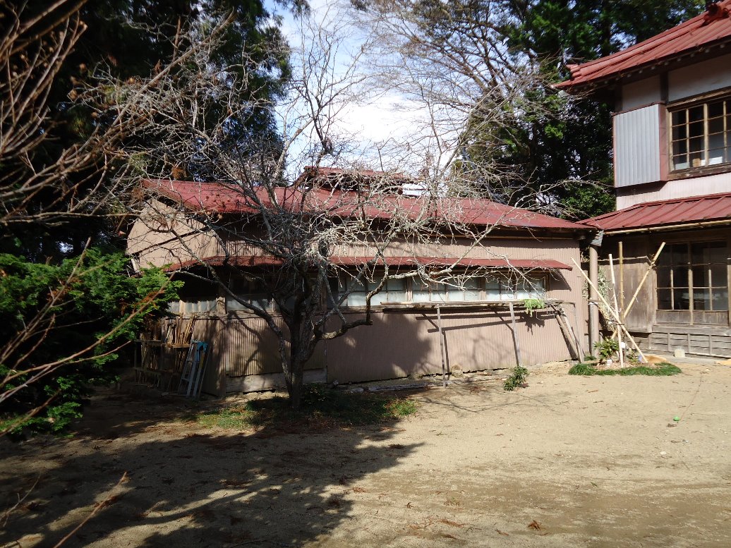 境内の中の花海棠(ハナカイドウ)の木、4月には満開になるようですが現在はご覧のとおり、葉っぱ1枚ありません。市指定保存樹木みたいです。 |