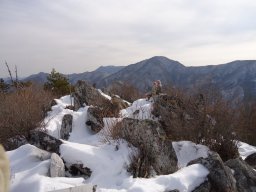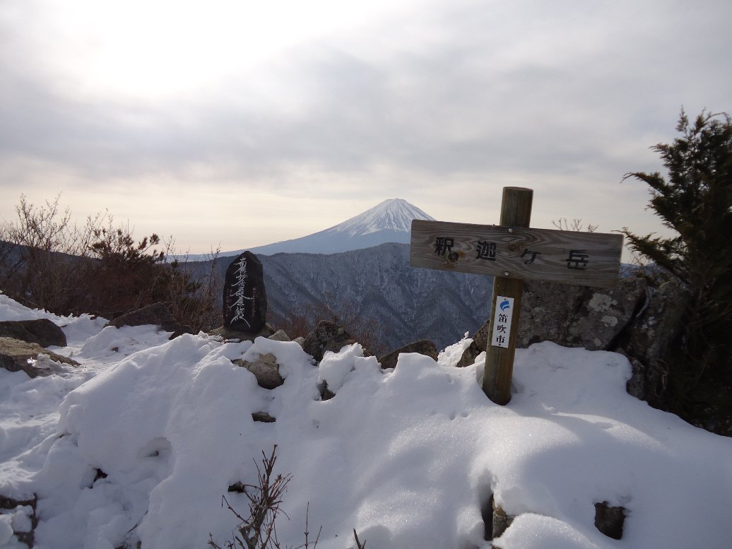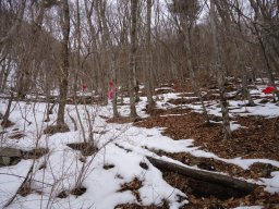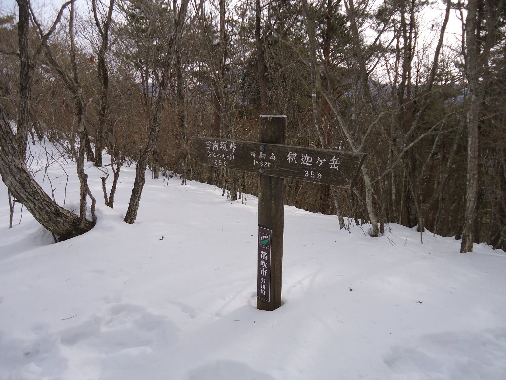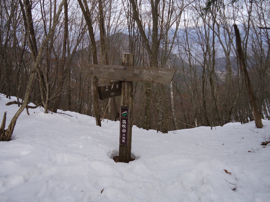 歩き始めて1時間ほどで稜線に出会います。ここを右に折れ釈迦ヶ岳方面に向かいます。 |