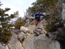 山頂に近づくと急な岩場にさしかかります。