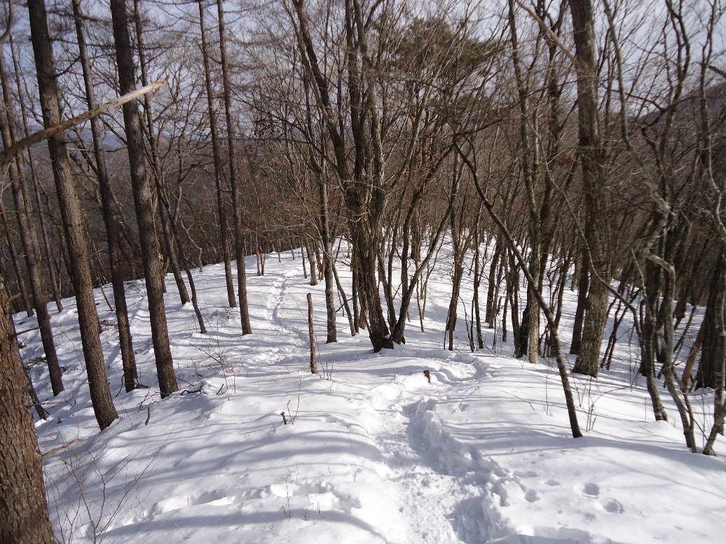 雪も10〜20cm程度で、踏み跡もしっかりしています。歩きやすい稜線です。 |