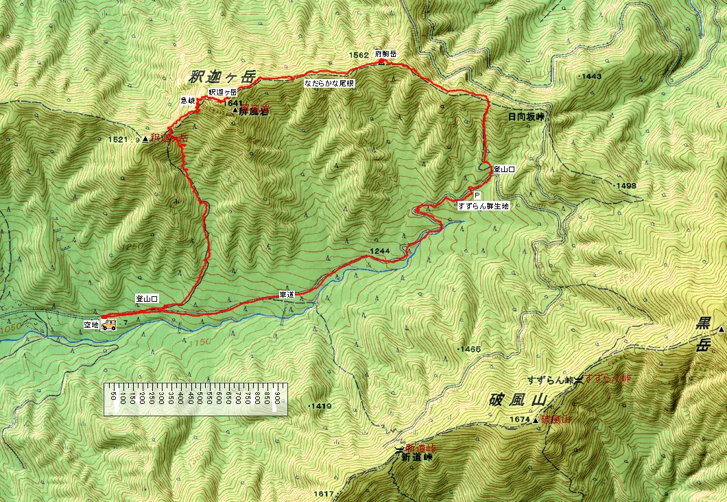 ここには広い駐車場があるので、ここに車を置いて黒岳や釈迦ヶ岳に行くのもいいかもしれません。 |