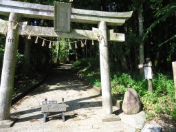 神武神社の鳥居をくぐり登山道が始まります。 |