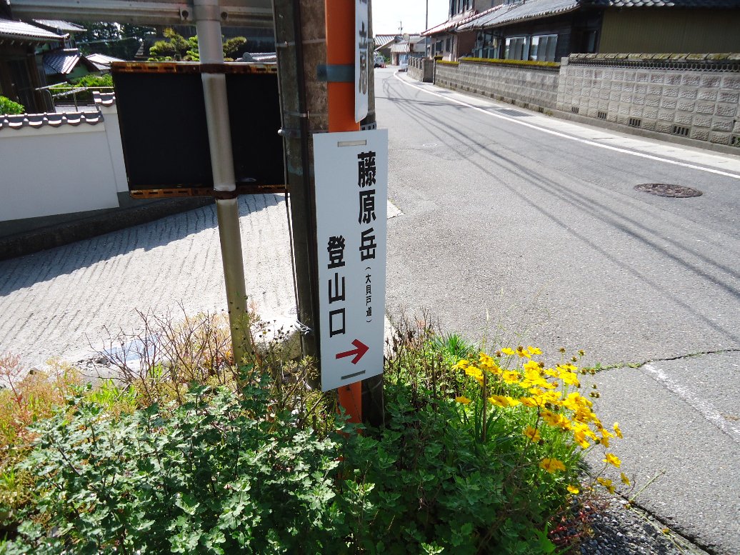 小学校の前を左に折れて、表登山道(大貝戸登山道)に向かいます。 この看板ちょっとわかりずらい。 |
