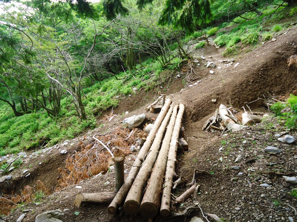 このあたりの山も土砂崩壊が進んでいるんですね。登山道は整備されているので歩きにくいことはないのですが山肌が痛々しく削られています。 |