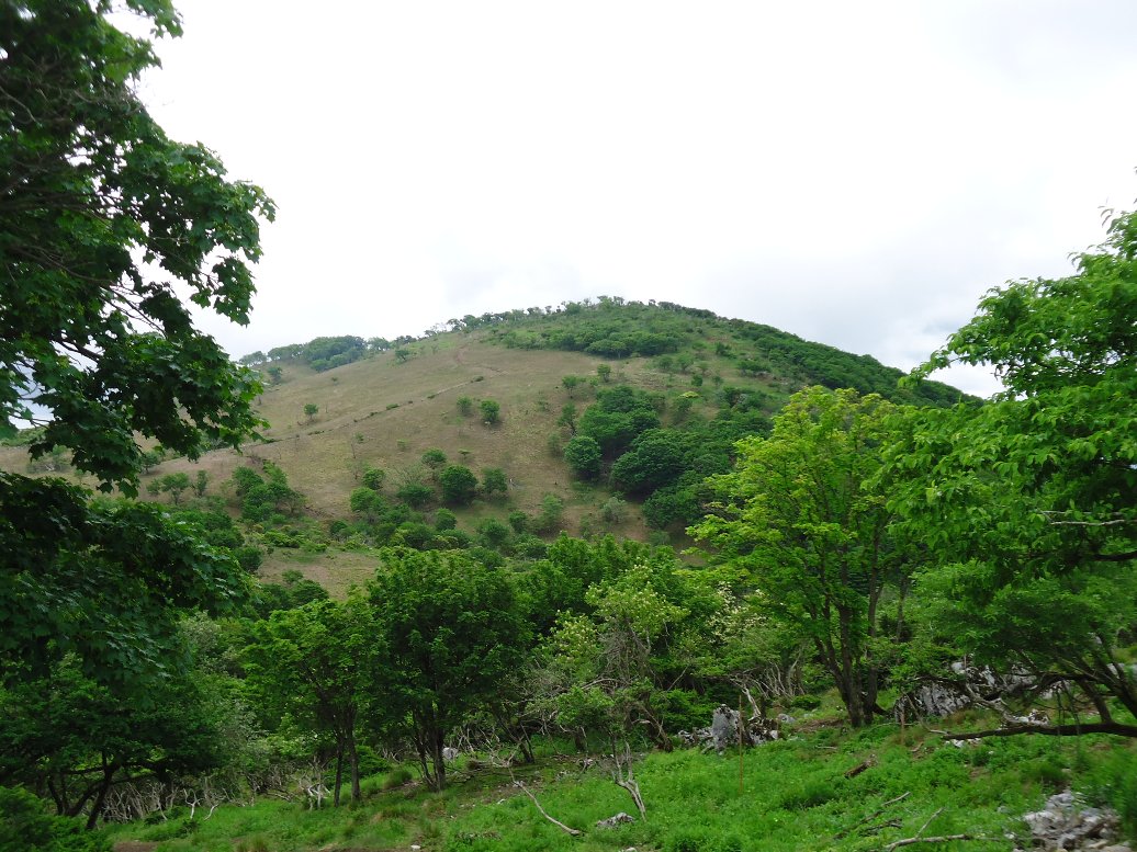 高い木々は無くなり、草原の中を歩きます。 |