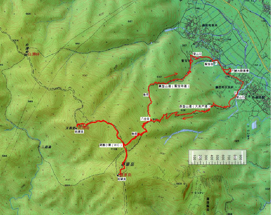登山口付近にはいくつか駐車場がありました。とりあえず、本にも書かれていた藤原西小学校前の観光駐車場に車を停めます。ご覧のとおり広い駐車場でトイレもあり、登山靴洗浄用の水道もありました。朝の8時頃でしたが駐車場はガラガラ。梅雨の真っ最中ですもんね。 |