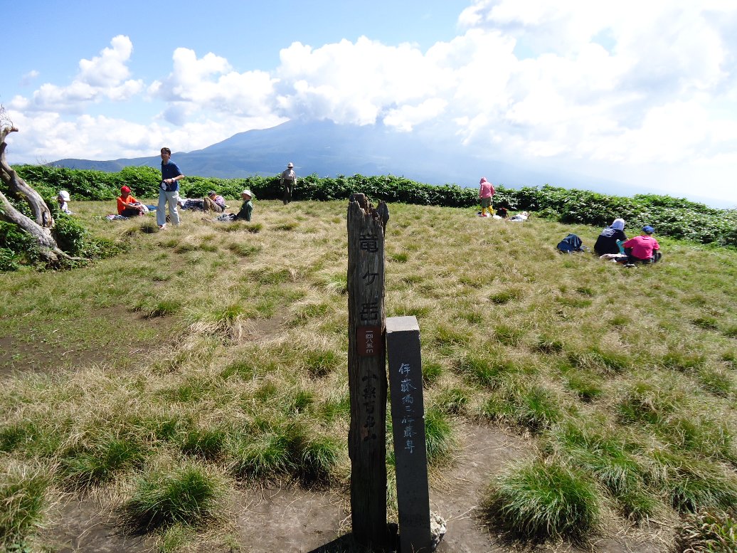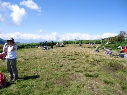 歩き始めて2時間半、やっと頂上に到着しました。景色のよい広い空間です。登ってくるときには4〜5人しか会わなかったのですが、頂上は大勢の方でにぎわっています。