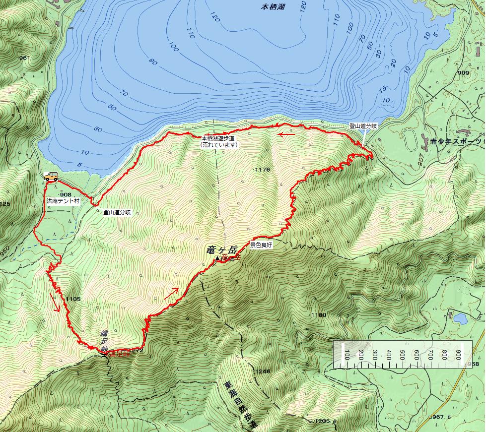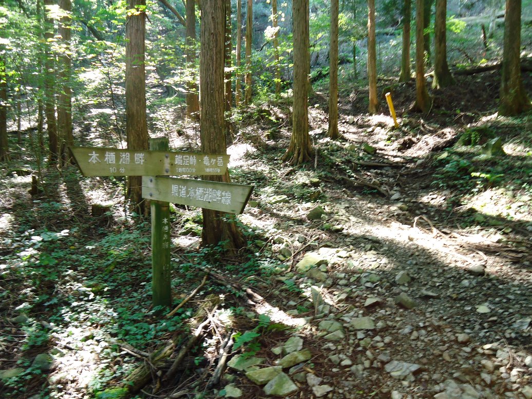 下山は本栖湖キャンプ場方面に向かいます。途中分岐があるので左の本栖湖方面へ。 |