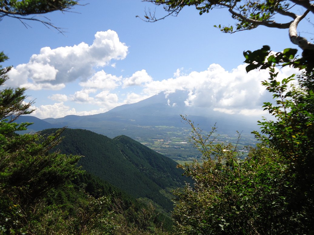 端足峠からの富士山の雄姿を期待していたのですが、ご覧のとおり残念ながら山頂は雲の中でした。端足峠は竜ヶ岳と雨ヶ岳分岐点になっています。今回は竜ヶ岳へ向かいます。 |