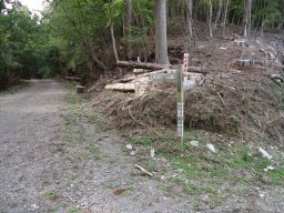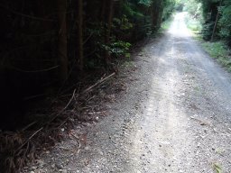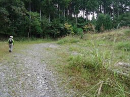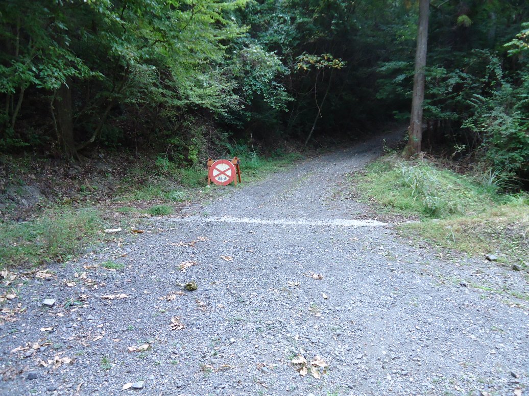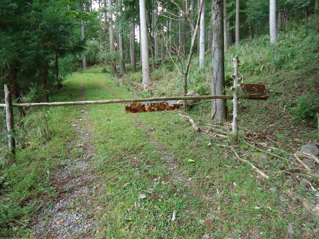 立ち入り禁止なので、右側の林道を進みます。持ってきた地図もちょうどこのあたりは切れていて確認できず、GPSでも林道は載ってませんでした。 |