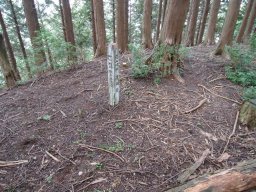 尾根を登りきったあたりで、登山道に合流しやっと一安心。 しばらく進むと蔵屋敷跡に到着しました。しかしこの赤バッテンは何の意味でしょう? |