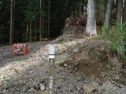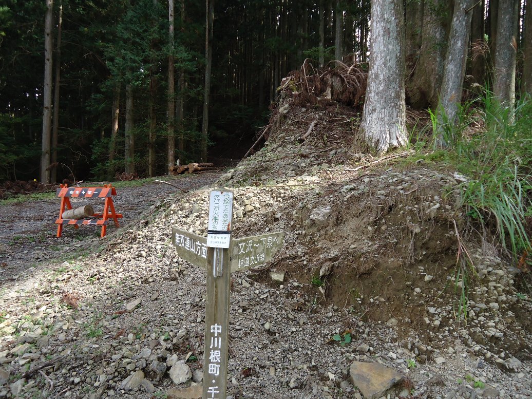 立札を見ましたが、林道の案内はありましたが登山道の標識は全くなし。これじゃあ、こっちから登りは、道を知っていないとわかりませんね。 |