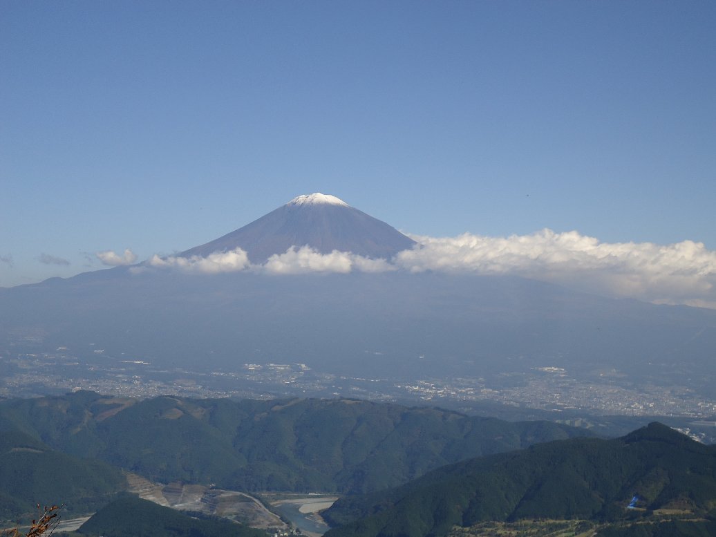 突然目の前が開けました。晴海展望台です。ここは絶景です。目の前に富士山が迫ります。右に目を移すと愛鷹山塊もくっきり見えます。さらに駿河湾の向こうには伊豆半島が横たわっています。 |