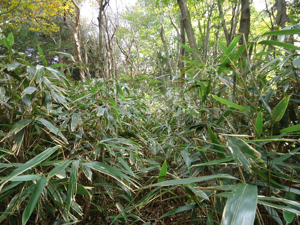 草木が刈りとられていて、小ざっぱりとした広場になっています、が、360度木々に囲まれていて全く展望はありません。 来た道を戻り、次の目的地の晴海展望台に向かいます。 |