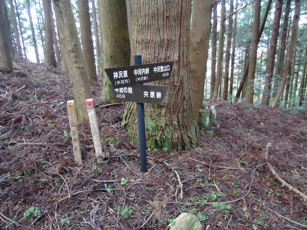 標準時間の2倍ほどかかり、中沢峠登山口になんとか到着しました。ここの登山道はやっぱり通っちゃいけません。 |
