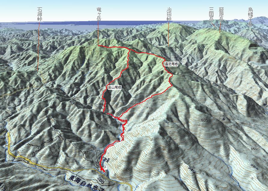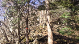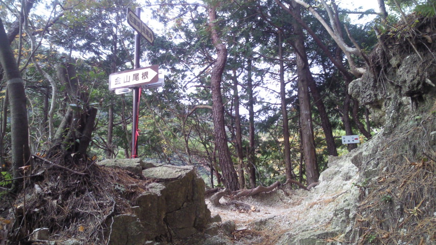 登山道に戻り、しばらく行くと金山尾根の分岐があります。今回はここを右に折れて金山尾根に向かいます。 |