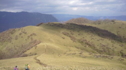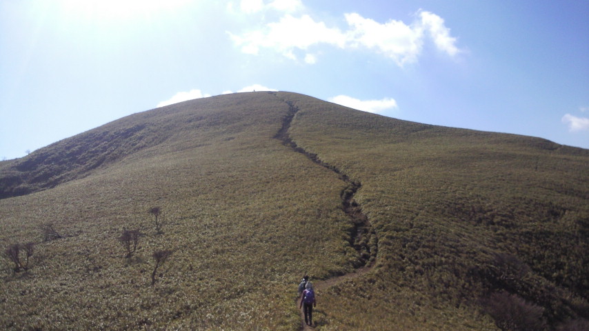 視界が開けてくると、遠足尾根からの登山道に合流します。 |