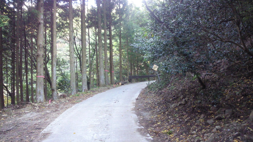 岩山を過ぎると、しばら〜〜〜〜く単調な杉林を下り遠足尾根登山口に出ます。あとは林道を歩いて帰るだけ。 |