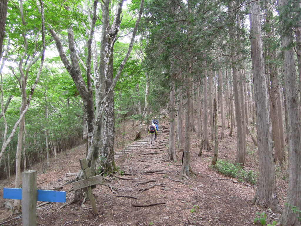 ブナの林なので木漏れ日があり、曇ってはいましたが明るい登山道です。 |