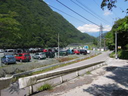 奈良田温泉街を通り、少し行くと大きな駐車場があります。バスの出発時刻は13:30。だいぶ早く着いてしまいました。トイレはありますが他には何にもありません。温泉街に戻って時間を潰そうかと思いましたが、まあのんびりここで待つことに。
