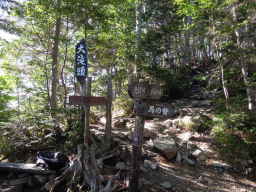 5合目の大滝頭。 ここで一休み。下ってくる人からもうちょっとで展望が開けるから頑張って!と声を掛けられました。 |