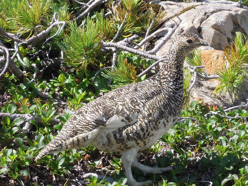 ちょっと行ったところで、ライチョウ親子がひょっこり現れました。 久しぶりに見るライチョウです。アルプスの山に来たんだなって実感しました。 |