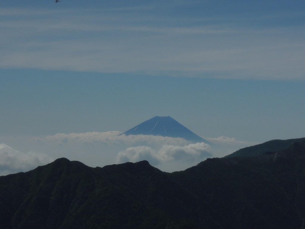 富士山も良く見えました。見えないけどあそこにも大勢の人ががんばって登っているんでしょう。 |