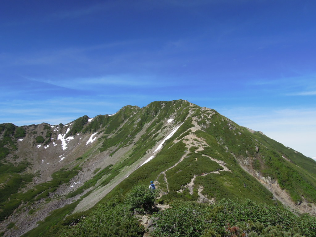 仙丈ヶ岳まではあと少し、、いやまだこんなにあります。がんばっていきましょう。 |
