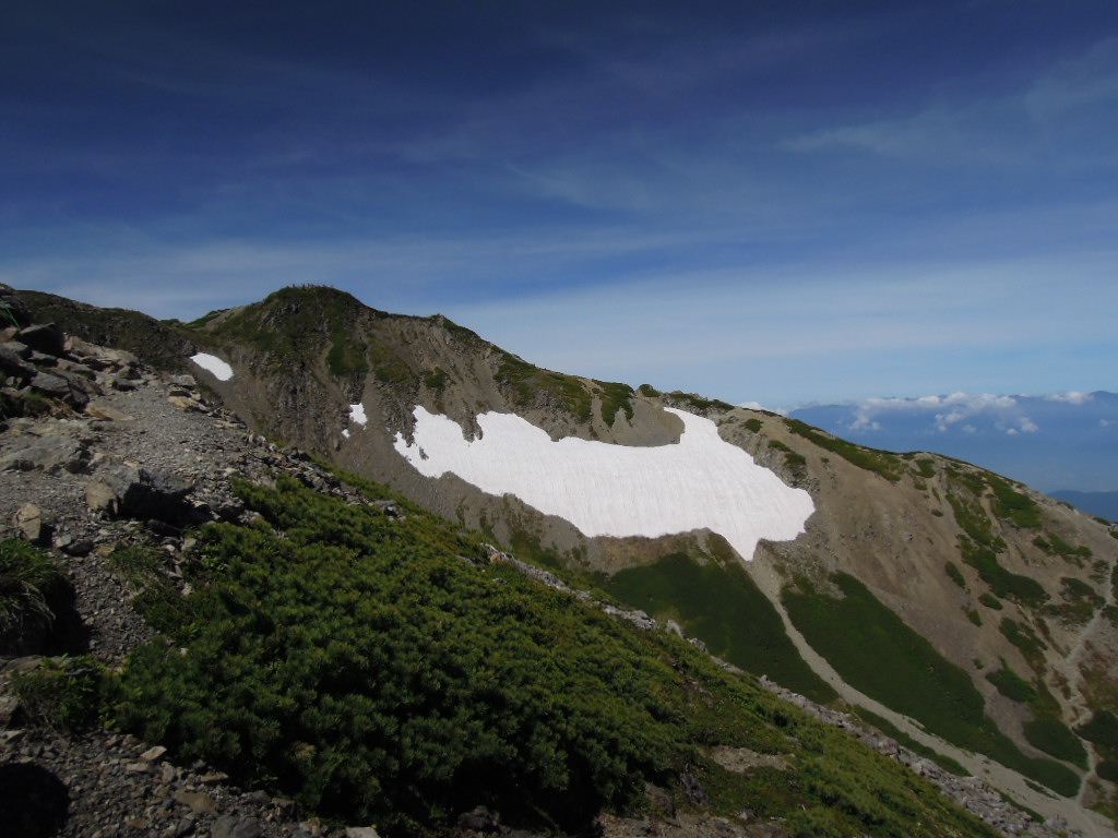 カールにはまだ雪がいっぱい残ってました。 |