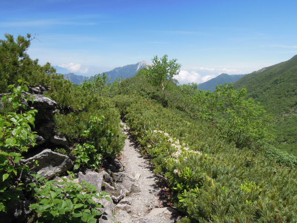 アップダウンを繰り返しながら進みます。このあたりやっぱり空気が薄いのか息が切れます。 |