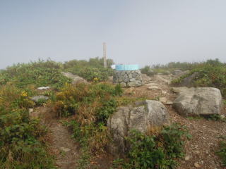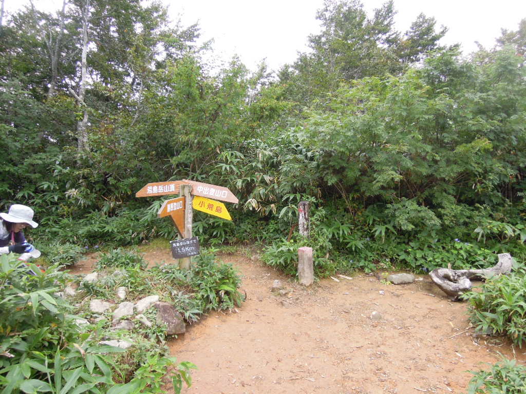 ここで中出コースと合流します。とりあえず左に折れて荒島岳山頂に向かいます。 元気があったら帰りに小荒島に寄ろう。 |
