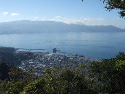 右手には駿河湾。向こうは伊豆半島。なかなかいいコントラストです。 |