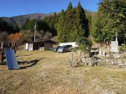 「なかとみ青少年自然の里」にある炭焼き園駐車場です。日当たり最高、ぽかぽか陽気です。 ここで日なたぼっこをしていたい気分を抑えてさあ出発。 |