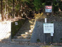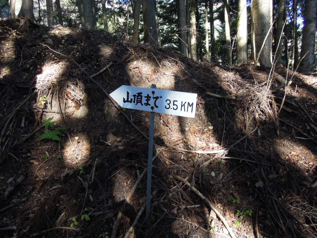 平須登山口です。山頂まで3時間30分、展望台まで2時間30分って書いてあります。着くのはちょうど昼だな。 |