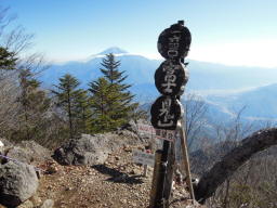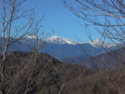 富士見山〜御殿山の稜線に着きます。ここからは雪化粧をした南アルプスが良く見えてきます。 |