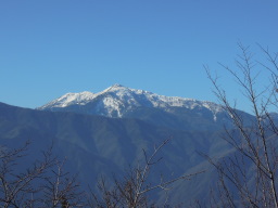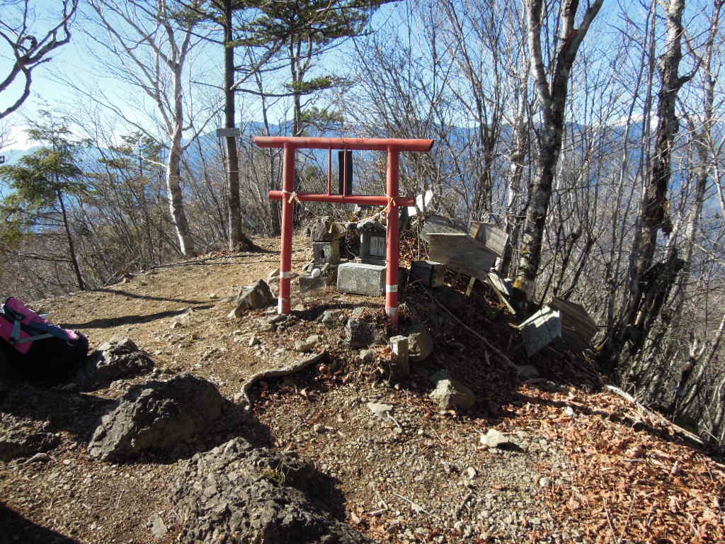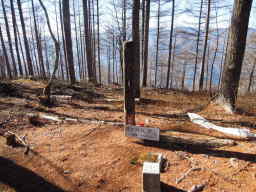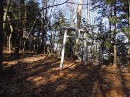 展望台から15分ぐらい歩くと二等三角点がある山頂に到着します。木々に囲まれていますが、この時期は葉っぱが無いので周りの景色はよく見えます。 |