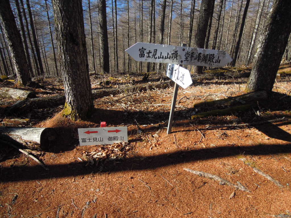 堂平方面に下りると甲斐やすらぎの宮に出ます。あとは車道を歩いて駐車場まで戻ります。 |