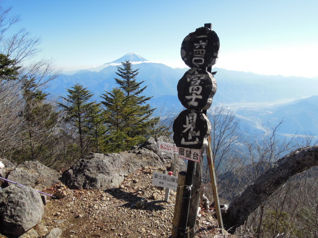 看板にも富士見山と書いてあり、ここが一般的に富士見山山頂をさすようです。三角点にこだわる人はこの先の1,639mの地点が山頂。 |