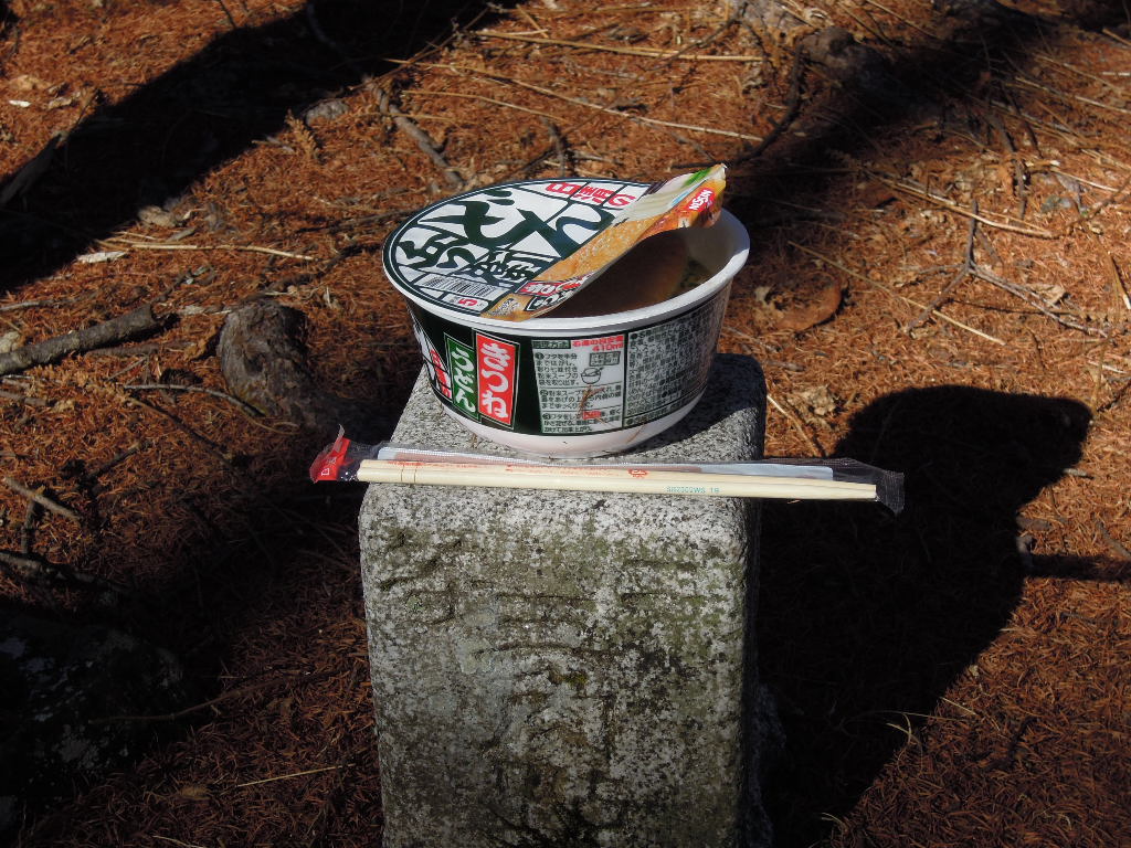 展望台は5〜6人のグループが鍋パーティーを開いていたのでスルーパス。 ここが念力大国神の祠。とりあえずお参りします、念力を授かることができるかな。 |