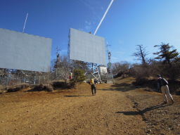 富士見荘の前を通り過ぎ山頂に向かいます。途中デカい電波反射板が並んでます。 |