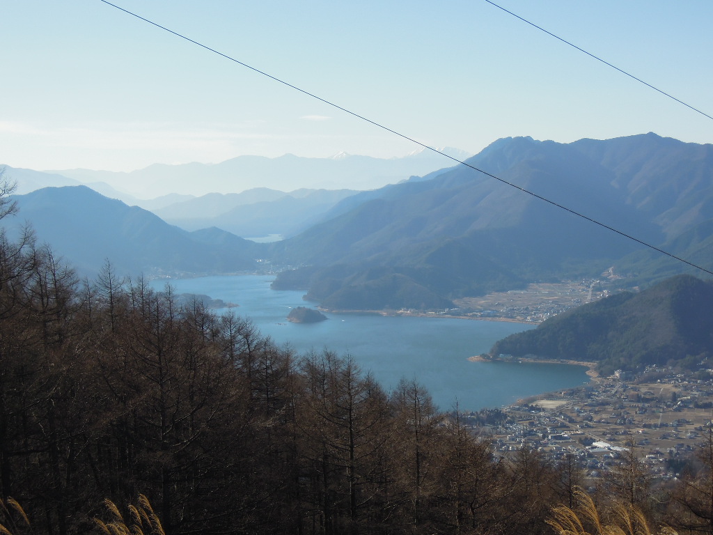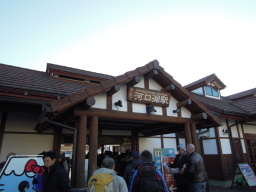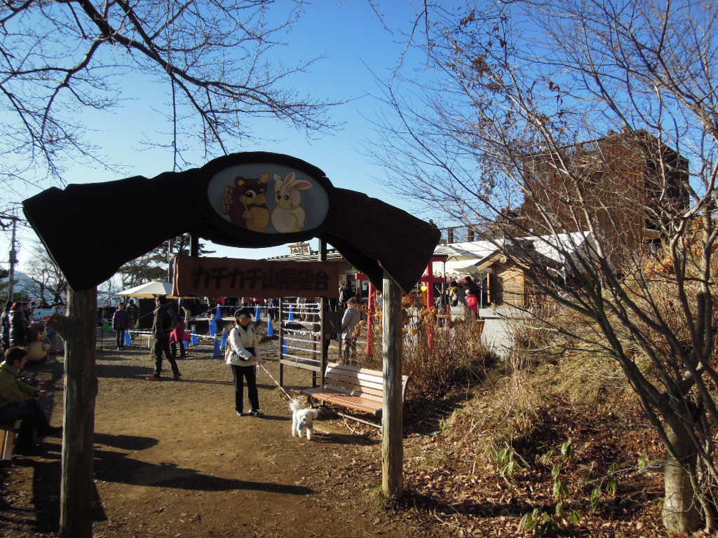 河口湖から観光ロ−プウェイが運行しています。ここが山頂駅。大勢の外国人でにぎわってます。 |