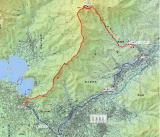 案内図には頂上まで3時間30分って書いてあります。目標3時間かな。 |