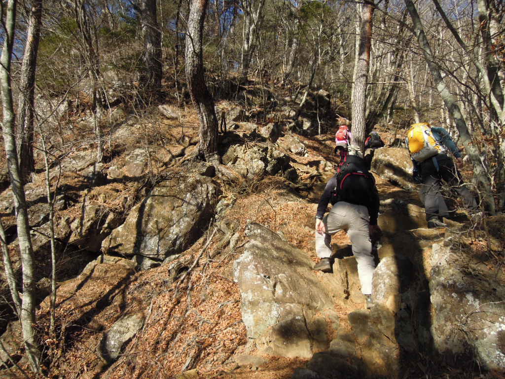 登っていくとだんだんと岩場が多くなってゆきます。 |