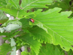 ハエみたいなのがいっぱい飛んでいました、正体はこれ。調べたら「アシナガオトシブミ」という虫で、ナラやクヌギの葉っぱが主食みたいです。 葉っぱを丸めてその中に卵を産む習性があるようです。 |