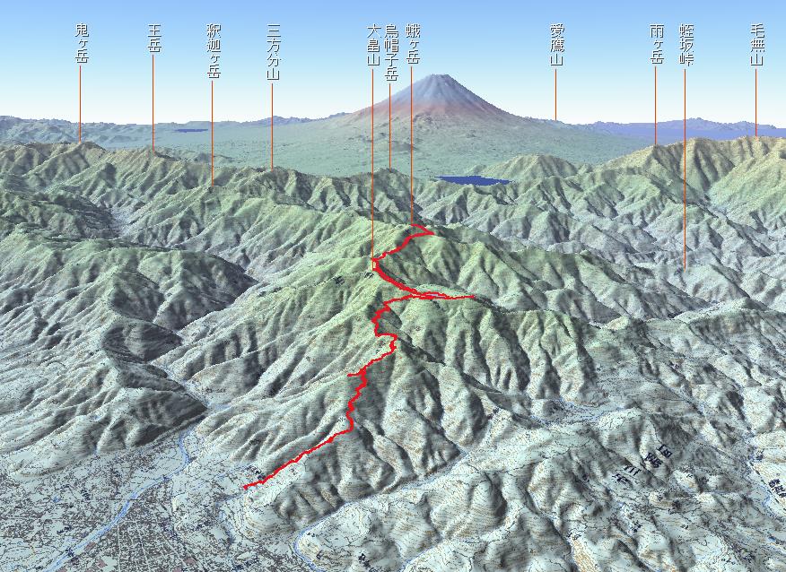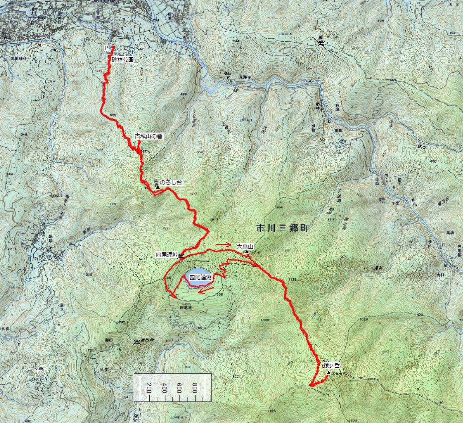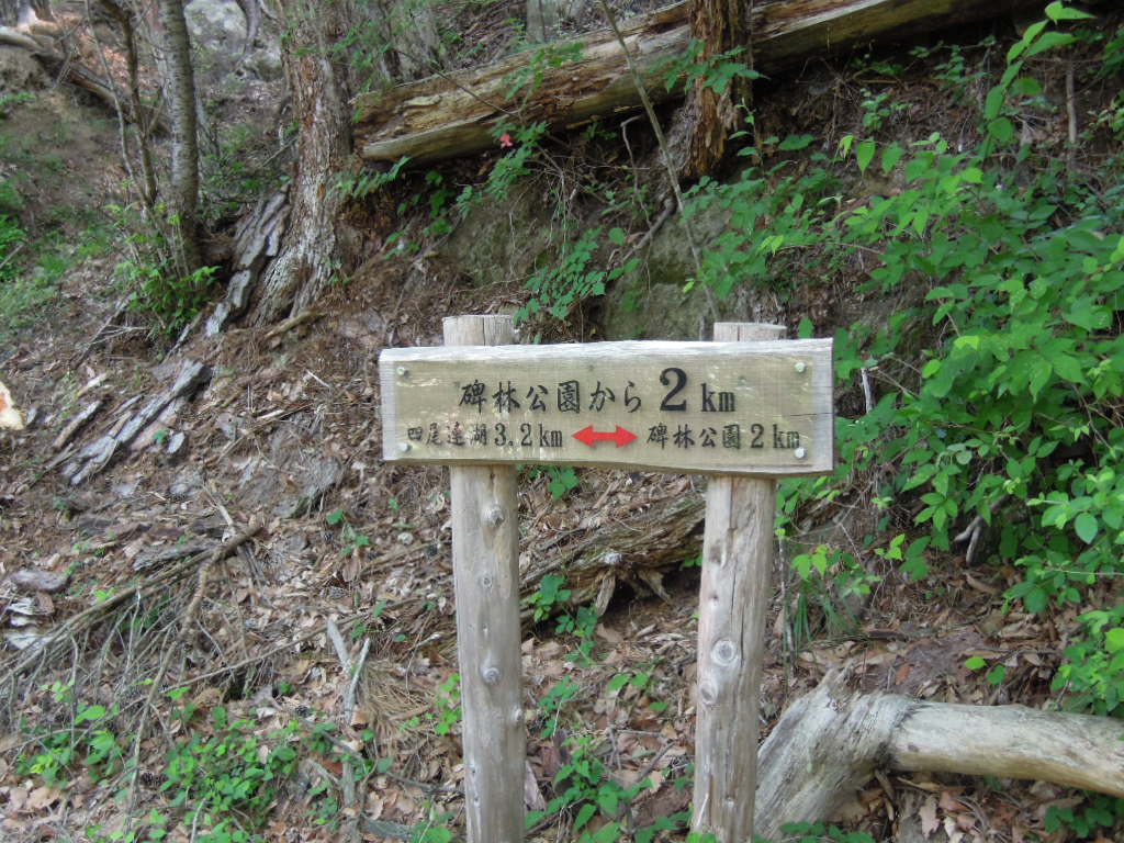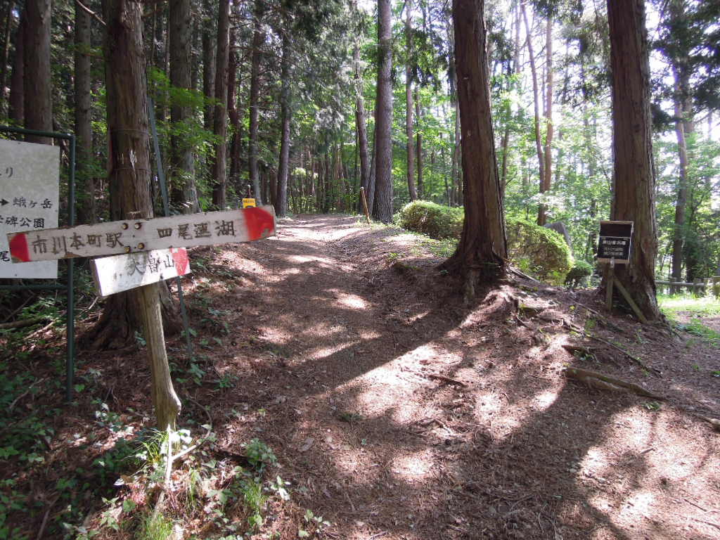 2時間ほど歩いて四尾連峠に到着。ここはいくつかのコースの合流地点。 |