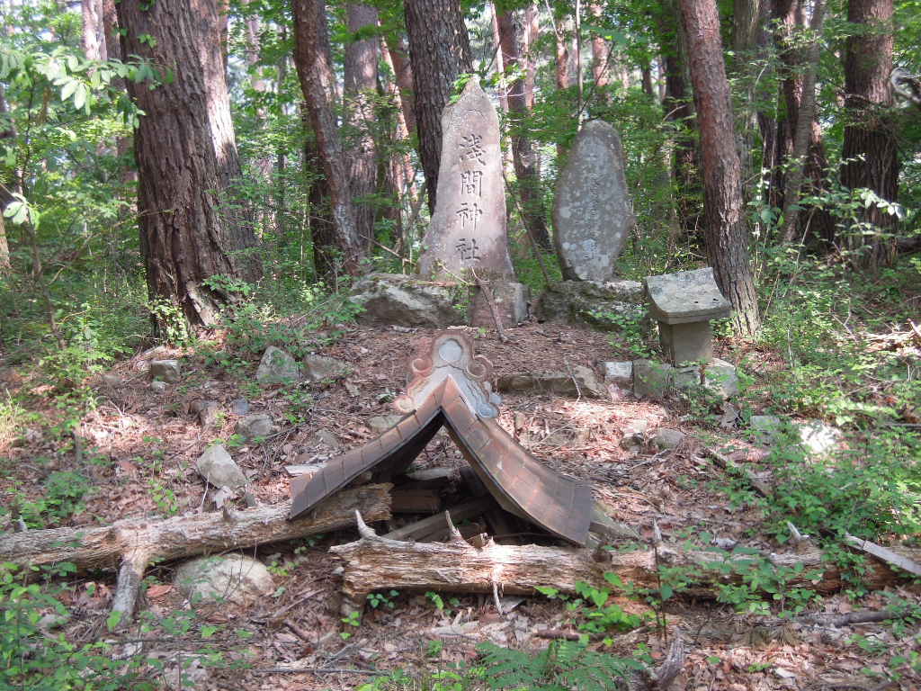 下山の途中で古城山ってとこに寄ってみました。朽ちかけた浅間社があるのみ。 |